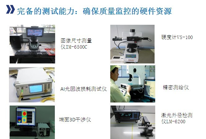 Ttwo-dimensional and three-dimensional microscope , precise image cartographic method, for us to make non-touching precise testing of size. Profile interferometer for 3D requests of the end-face inspection. X-ray inspector to make RoHS test of material. And the main requests of GR-326 related can be finished by ourselves with our test machine or system : ●High-low temperature circulation test. ●High temperature and humidity circulation test, ●Salt spray testing. ●Wiggle testing system. ----------------------------------------------------------------------------------------------------------------------------------------------- QC Process